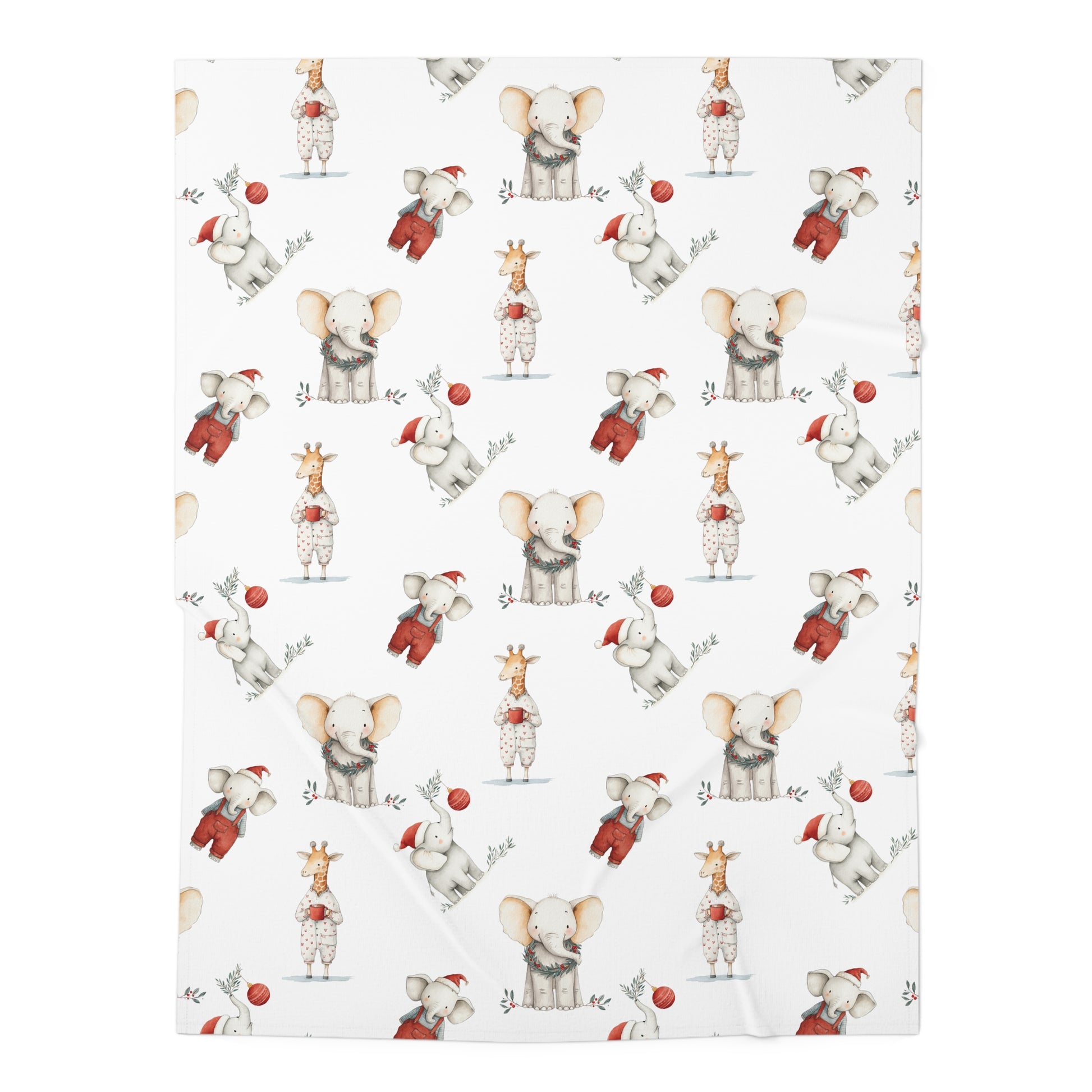 Snuggle your little one in holiday magic with this adorable Christmas animal swaddle blanket! Featuring festive elephants, giraffes, and other safari friends dressed in their holiday best, this blanket brings warmth, whimsy, and seasonal cheer to every cuddle. Perfect for newborn photos, cozy naps, or adding a festive touch to your nursery décor.