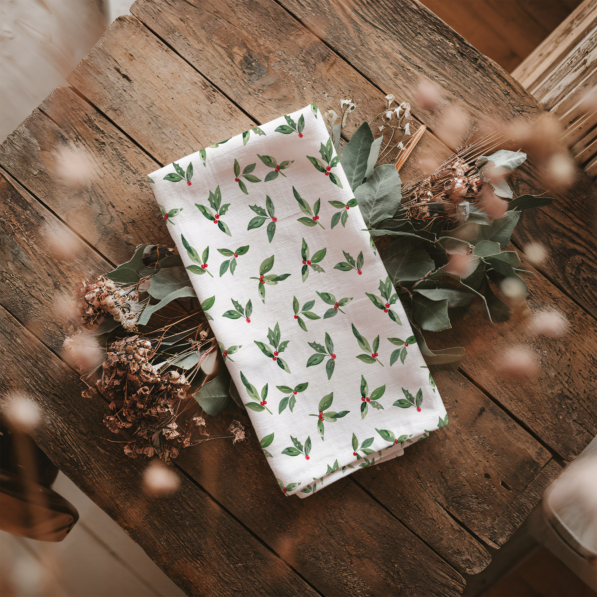 Holly Leaf Christmas Tea Towel | Merry Farmhouse Charm