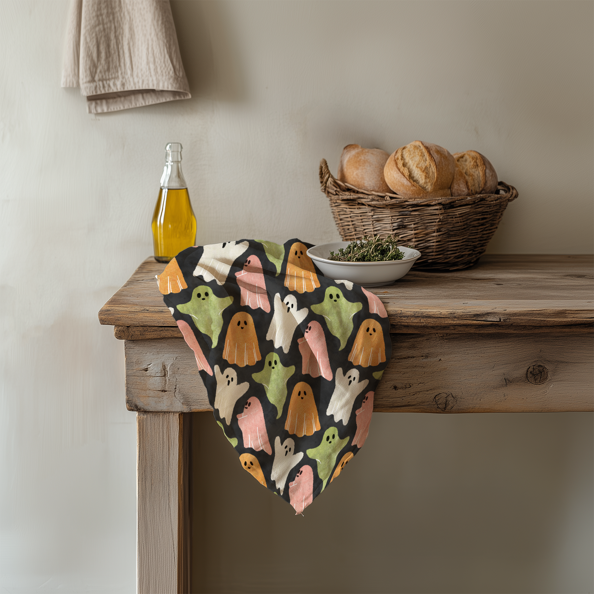 Add a touch of spooky charm to your kitchen with this Retro Ghosts Cotton Tea Towel.